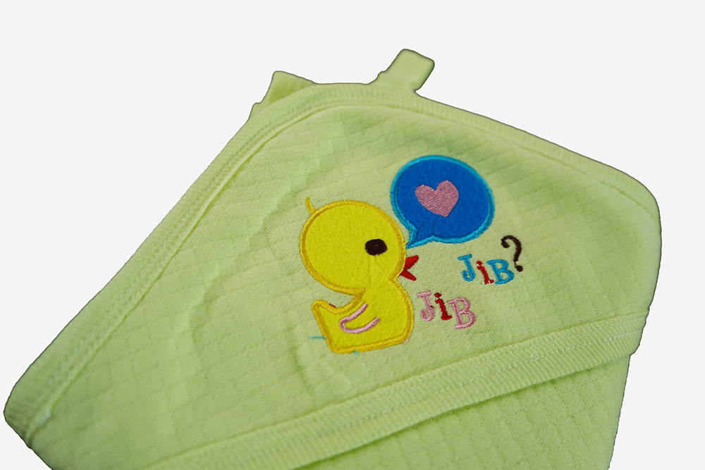 Soft Cotton Baby Hooded Towel – Light Green with Duck & Balloon Embroidery